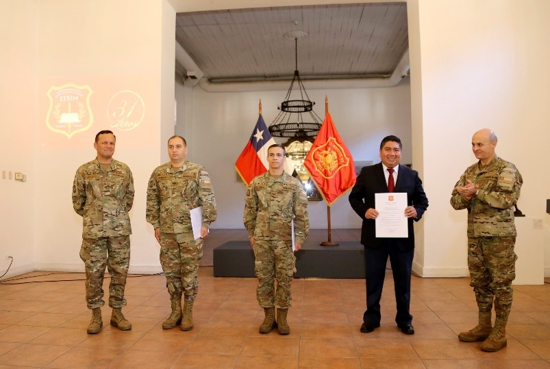Por su parte, se distinguió al personal destacado del año 2025 del CESIM, con el premio “Comandante en Jefe del Ejército”, en reconocimiento a su sobresaliente desempeño profesional y compromiso institucional. En esta oportunidad, se hicieron acreedores de esta distinción el Suboficial Iván Sandoval Detzel, el Cabo Primero Wladimir Flores Herrera y el Empleado Civil Fabián Huillín Piñaleo.